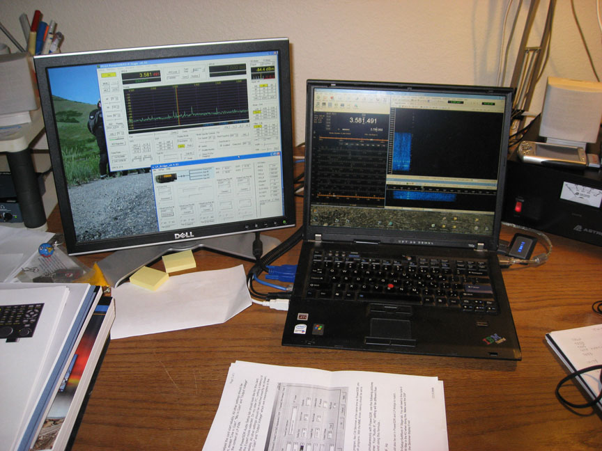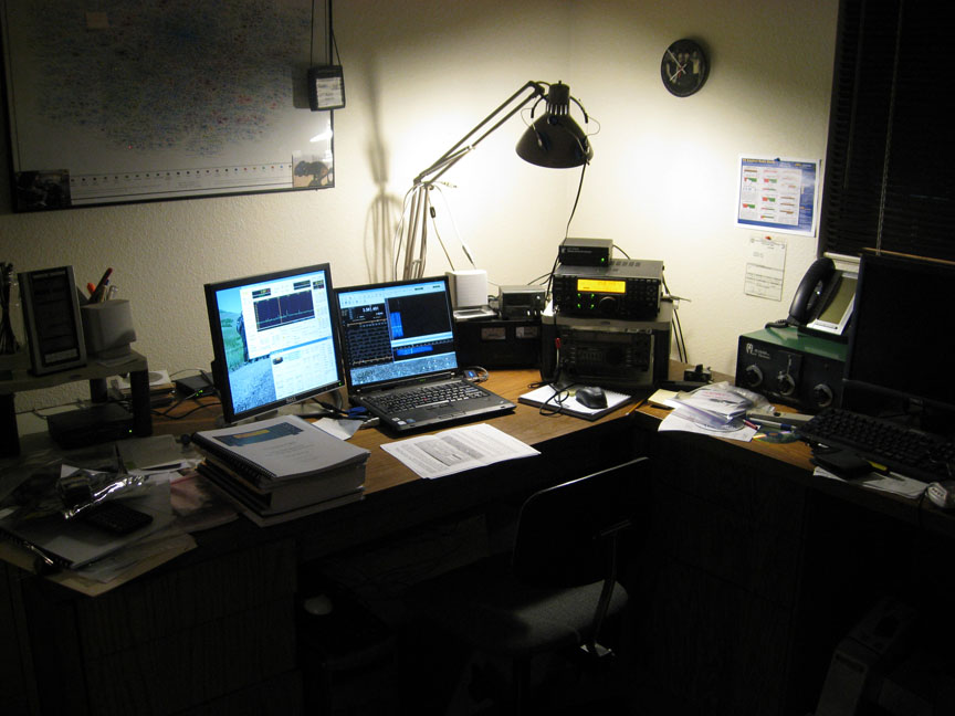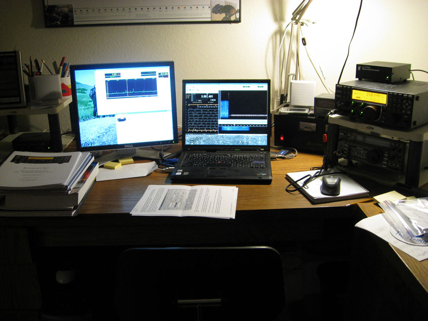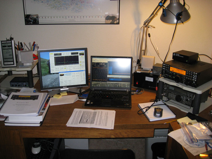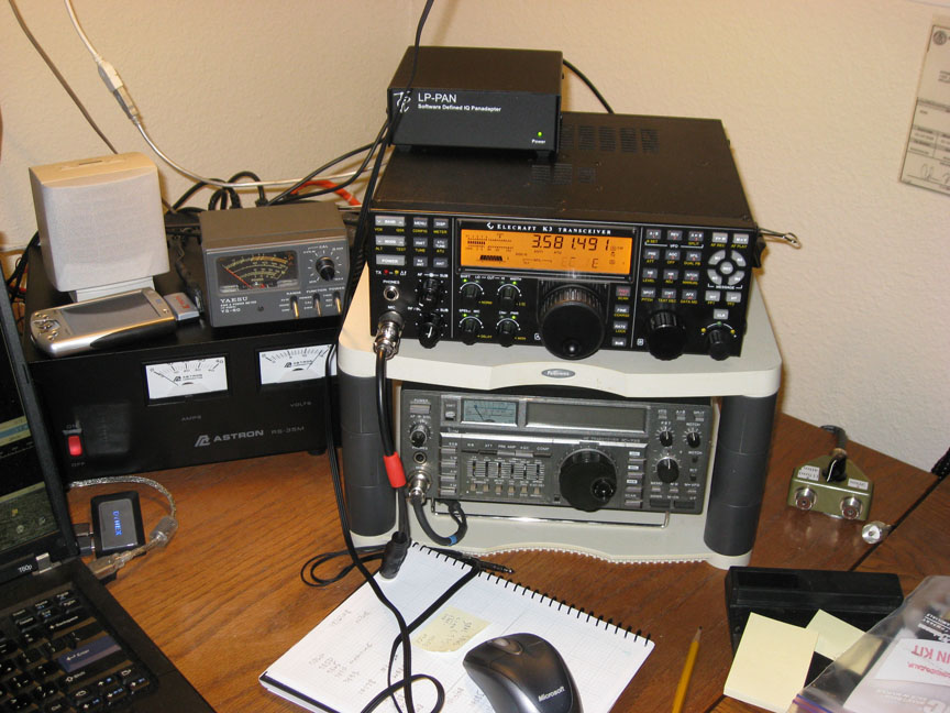 TelePost Inc. LP-PAN sitting on the Elecraft K3. C reative Labs E-MU 0202 USB2.0 Audio Interface on left.